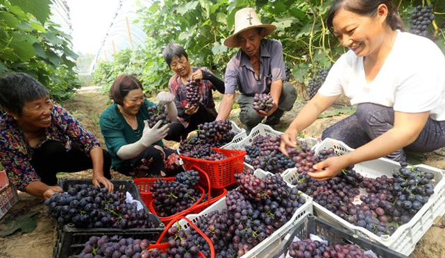 近日,信陽(yáng)市光山縣十里鎮(zhèn)李堰灣村天豐生態(tài)農(nóng)業(yè)專業(yè)合作社的無(wú)公害葡萄喜獲豐收,社員正在忙碌收獲葡萄供應(yīng)縣城超市。